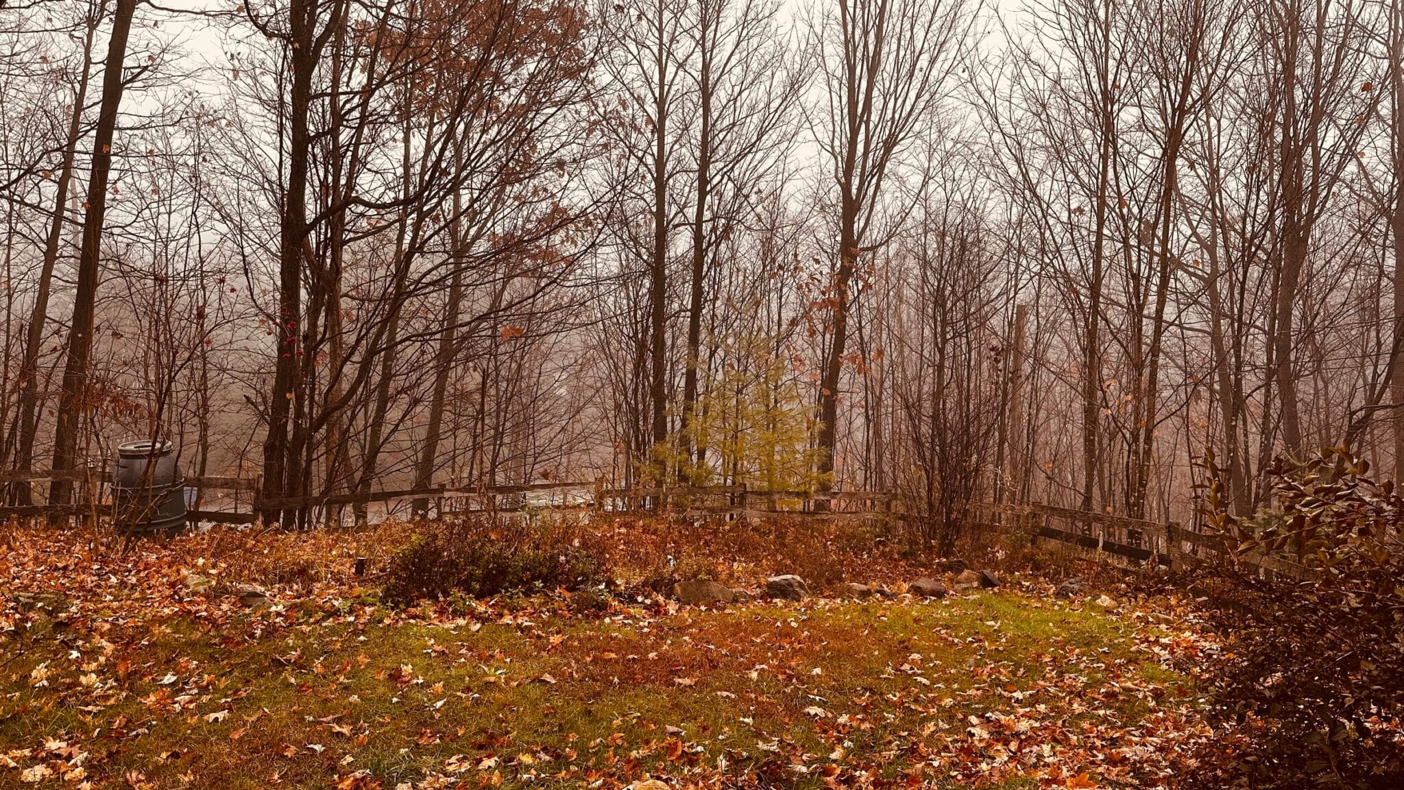 Amoureux de notre nouvelle maison dans son site enchanteur, malgré les arbres qui ont perdu leurs feuilles et le brun-gris qui s’installe pour l’hiver, le lieu reste magnifique. Le calme est seulement entrecoupé par le cri des bernaches qui migrent vers le sud et qui font escale sur nos nombreux lacs. Le café du matin est encore meilleur quand le soleil se lève et nous réchauffe, confortablement installés dans notre salon. Un petit paradis.